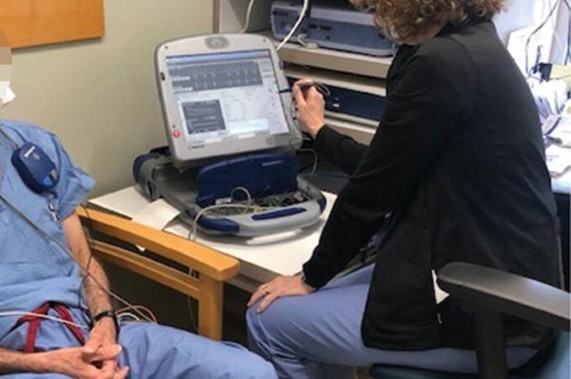During follow-up, a small sensor is placed over the area where the pacemaker or defibrillator is located. This sensor establishes communication between the implanted device and an interrogation unit (a small computer). The physician or technologist can then access the technical data required to verify proper functioning of the pacing or defibrillation system.